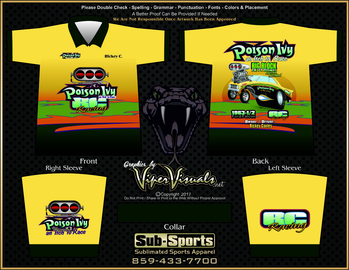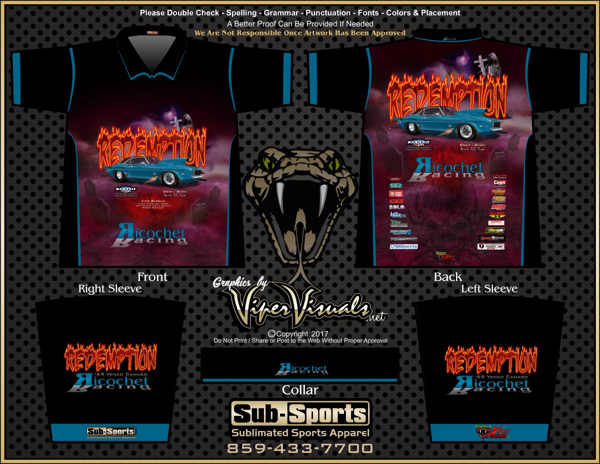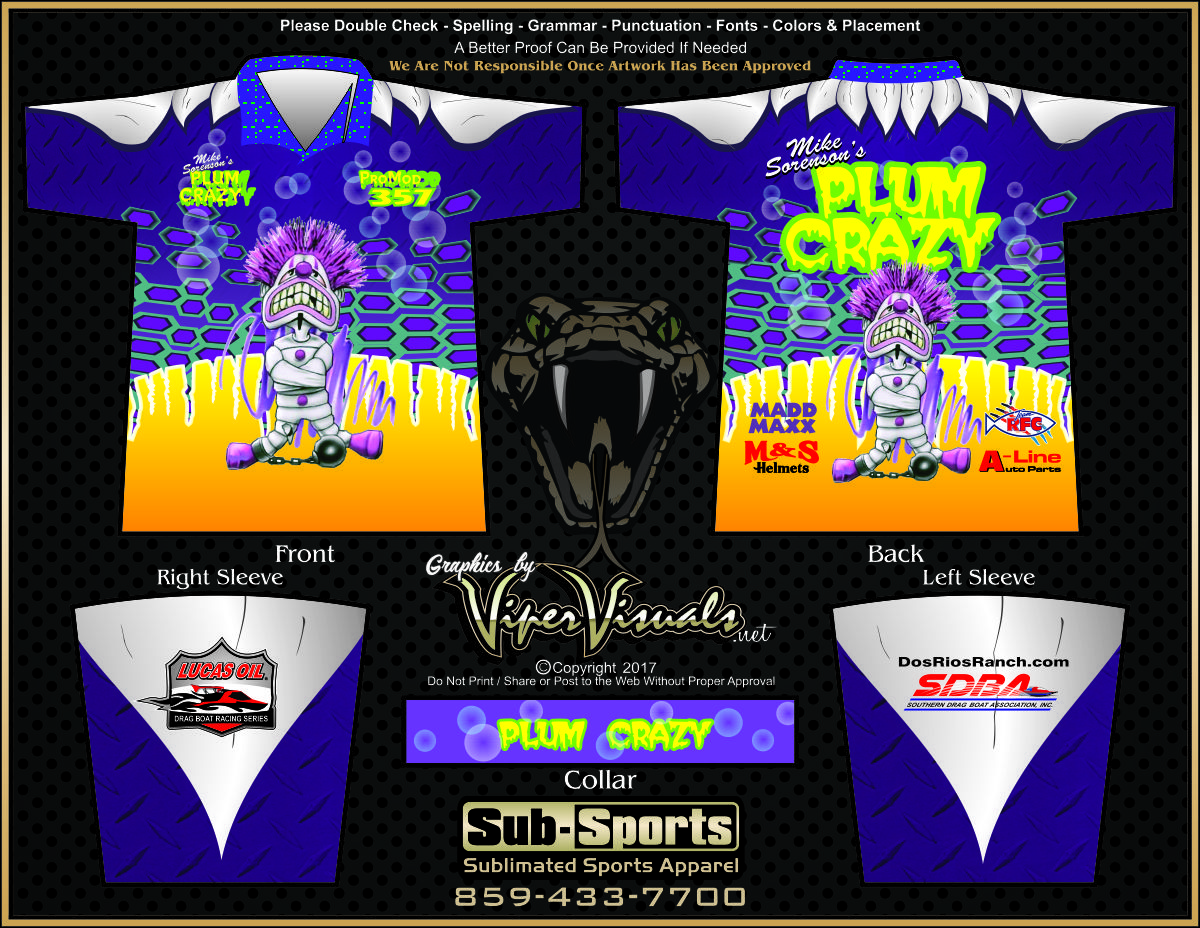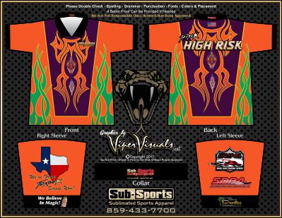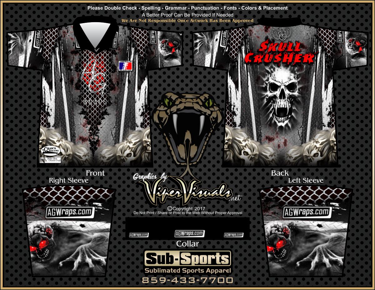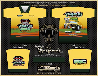 Here are a few samples of some crew shirt designs that we have created. Click on the images below for a closer look. We have a wide variety of Sublimated Garments Available Crew Shirts - 1/4 Zips - Polos - T-Shirts - Hoodies - Jackets + More Let Us Wrap YOU in Style! Call or Email to Get Your Shirts Started Today! eMail: Viper Visuals or Call 859-433-7700 We will reply to ALL eMail Messages within 24 hours. If you do not hear from us, please call for an alternate email address. NOTE: None of the garments pictured here are for sale by Viper Visuals. We can only assist you in contacting the customers and they may sell you one. We will be more than happy to design something just for you! |